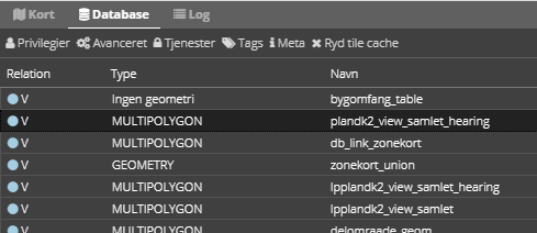 Vælg "Database" i topmenuen for at se en liste over lagene.