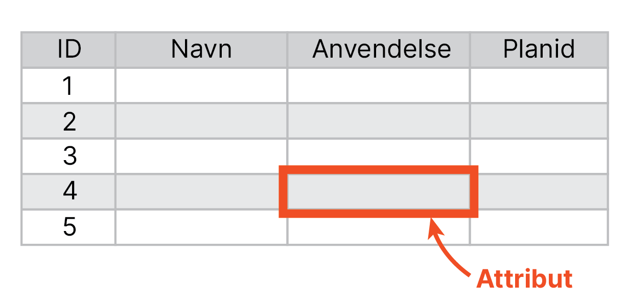 Til et vektorlag er der knyttet en attributtabel. Denne kan indeholde yderligere oplysninger om hvert objekt.