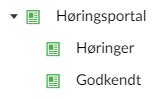 Høringer opsættes på undersiderne "Høringer" og "Godkendte", der ligger under "Høringsportal".