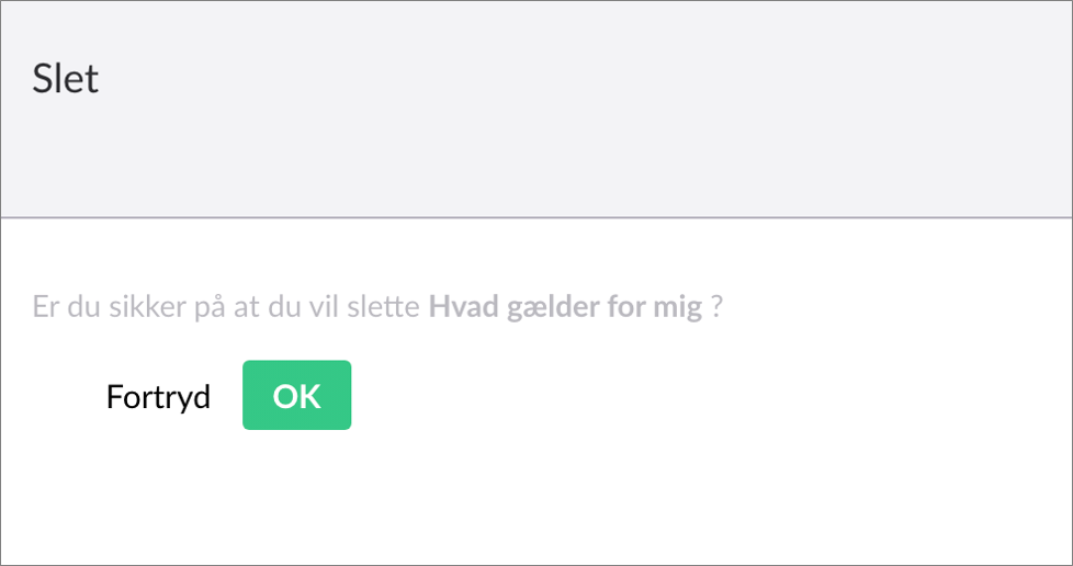 Klik på "Slet" i panelet der fremkommer. Herefter bekræftes sletningen af en side ved at klikke på "OK".