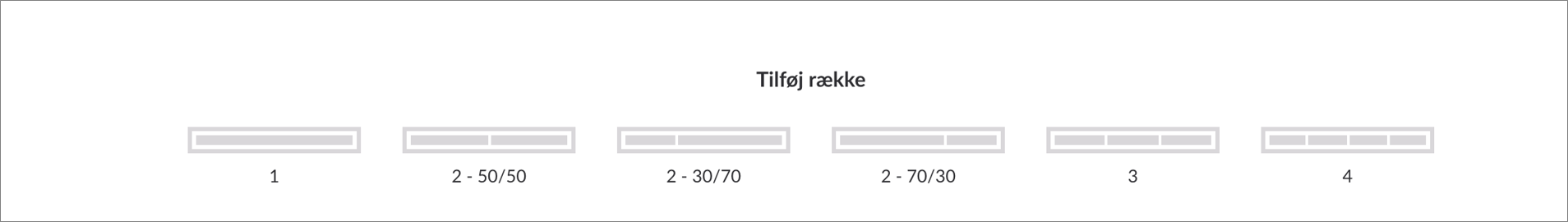 For at tilføje en ny række til indhold på en side tryk på den ønskede inddeling nederst på siden.